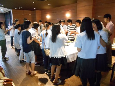 昼食後、大学のHPに載せるための記念撮影。 去年は外で暑かったので、今年は食堂内で。。 |