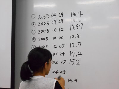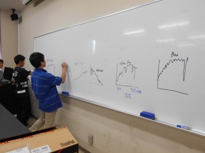 全体を集めて光度曲線のグラフを描き、議論。 |