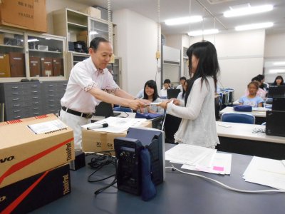 PCのセッティングなど準備は二日前に済ませており、 当日朝は8時ぐらいに来て、エアコンを早くから入れておいた。 |