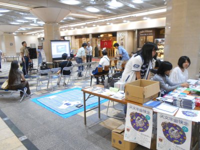 受付も向こうは天文カルタスペースで、その向こうはミニ講演会コーナー。 柱の裏側が工作スペース。 今回はぼくは講演はお休みで、受付もそこそこに手があったので、 割と手持ちぶさただった …天文宇宙検定の団扇はたくさん配った。。。 |