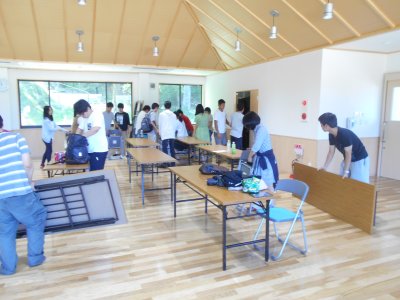 3日目は、ぼくもさすがに7時まで起きれなかった。 何とかロッジの清掃や後片づけを済ませて、 10時半から創作活動室でゼミ開始。 やはり、何とかゼミを済ませ、 創作活動室のお片づけ。 |