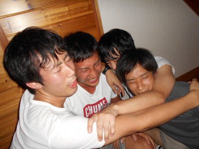 0時過ぎには、さすがに疲れてきたのか、 ゆっくりした呑みモード。もう何人かは寝ただろう。 ぼくも1時過ぎには就寝。 もっとも、ときどきトイレに行ったときに、 明け方まで話声がしていたからなぁ。 |