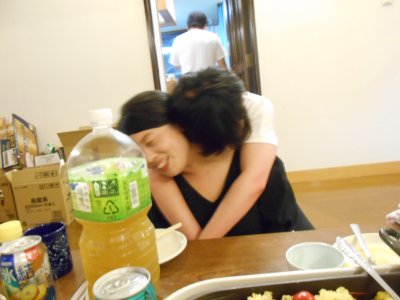 まだ7時半なのに、といっても、はじまって2時間経ってるか、 すでに暴走し始めた竹●。 今年も量が多く、パスタやご飯モノがまだまだ残っている(!!!)。 |