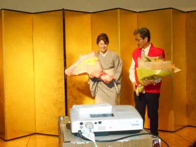 祝賀会には理佳夫人も参加。 なんだか、結婚式を思い出すね(!)。 |