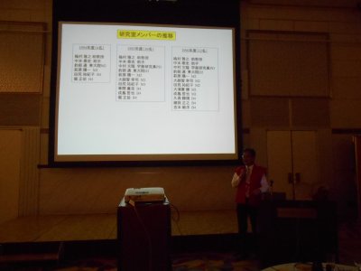 締め括りに、梅村くんが、昼間は研究の歴史だったの対し、 主に研究室の歴史について語ってくれた。 こちらもエピソード満載で楽しかった。 |