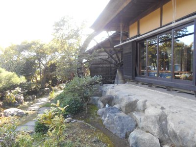 最終日、ランチしようという話になっていて、 前日が飽食だろうから、軽い蕎麦あたりをリクエストしていたら、 なかなか美味しい蕎麦屋さんに連れて行ってくれた。 古い民家を移築したらしく、建物の造りも興味深かった。 |