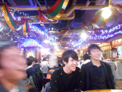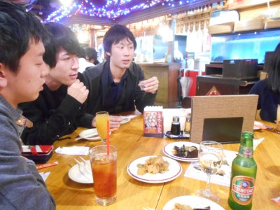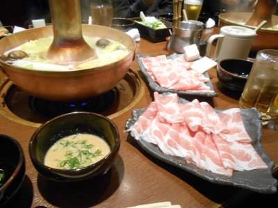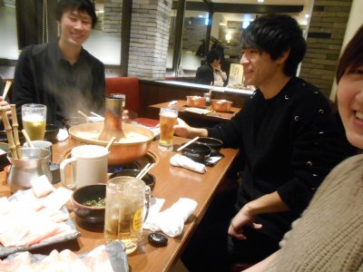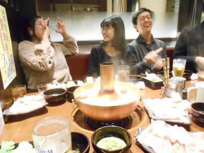 鹿児島で黒豚しゃぶしゃぶが美味しかったこともあってか、 研究室の忘年会、1次会は、なんばのしゃぶしゃぶのお店へ。 時期的に込んでいて、5時からの開始。 |