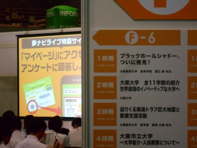業者実施の大規模合同進学説明会:夢ナビ2019大阪である。 夢ナビライブの内容は、 に書いたとおりだ。 大阪で開催されるようになってから2016年まで毎年、 6回ぶっつづけで講義を依頼されていたのが、 2017年と2018年は依頼がなくて、ようようお役ご免と安心していたら、 今年はほれ、“ブラックホールシャドウ”が見つかっちゃって、 業者サイドからまた強く依頼されて、 暑い最中(3年前は6月だったのに、今年は7月夏休み開催になっていた)、 フラフラになりながら話してきた・・・ |