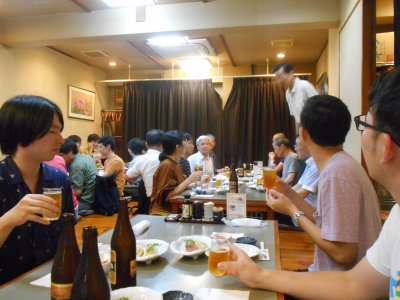 締め 加藤先生が締めの挨拶をして、お開きに。 ふつうは、2次会、3次会へ行くところだが、 翌日一コマ目の講義担当なので、 後ろ髪を引かれながらホテルへ戻った。 |