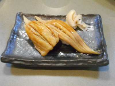 にぎり寿司 最後の押さえは、穴子の握りが一貫。 これも1つだけ食したが、絶品。 |