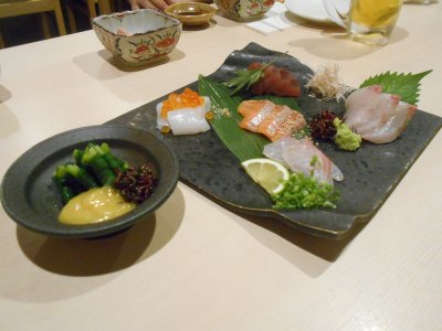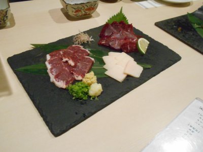 打ち上げ1 初日の夜はOBの小路口くんも交え、 市内の繁華街で呑み会。 海の幸も美味しいが、やはり熊本ということで馬刺しも。 適当に入ったお店だったけど、なかなかよかった。 |
