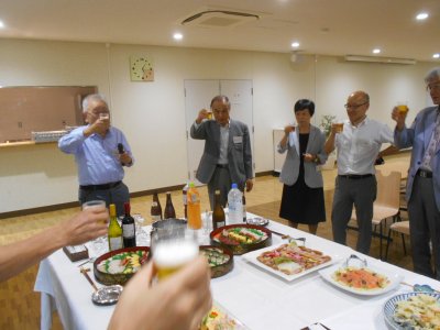 最長老の久保田さんの音頭で乾杯。 |