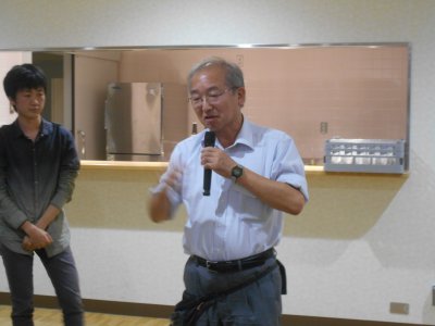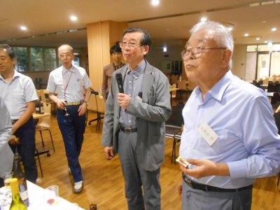 いろいろな人が一言ずつ話しているのだが、 加藤先生が思い出話などしているところ。 |
