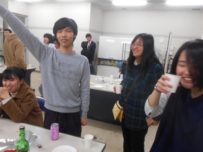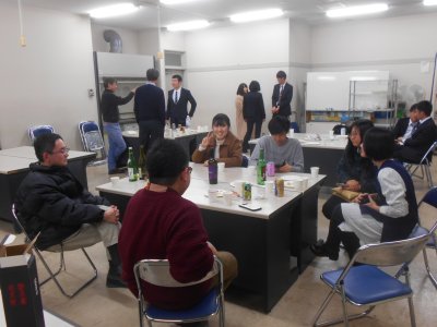 打ち上げパーティ だいぶぐらい経ってからのショット。 あちこちのテーブルでわいわい話している。 |