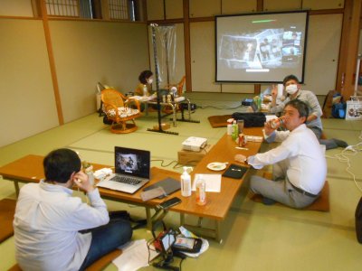 たしか本編は5時ぐらいで終わって、 まだ時間のある話したい人が残って延長したんだよね。 これは重力レンズの記念品の話をしてたときかなぁ (すでに、へべれけで、しかも何ヶ月も前なので、記憶無し) |