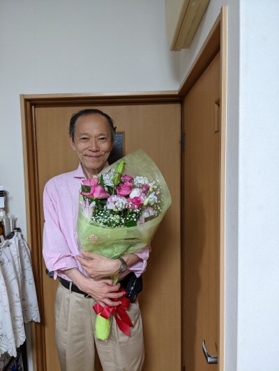 花束も贈呈いただいて、翌日、 素面でちゃんと撮っておいた。 本当にありがとうございました。 |