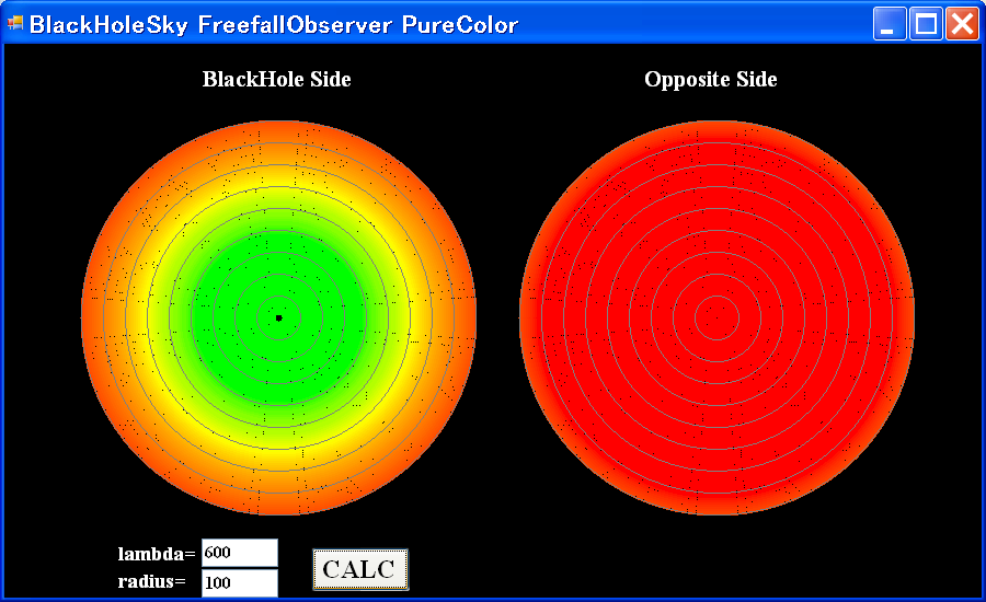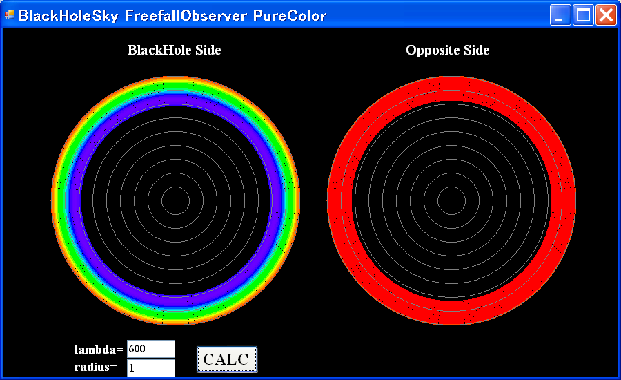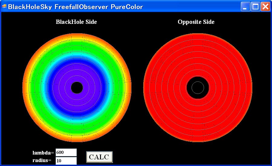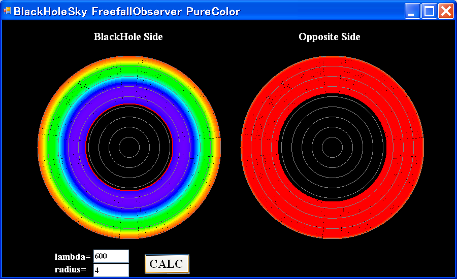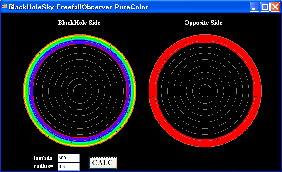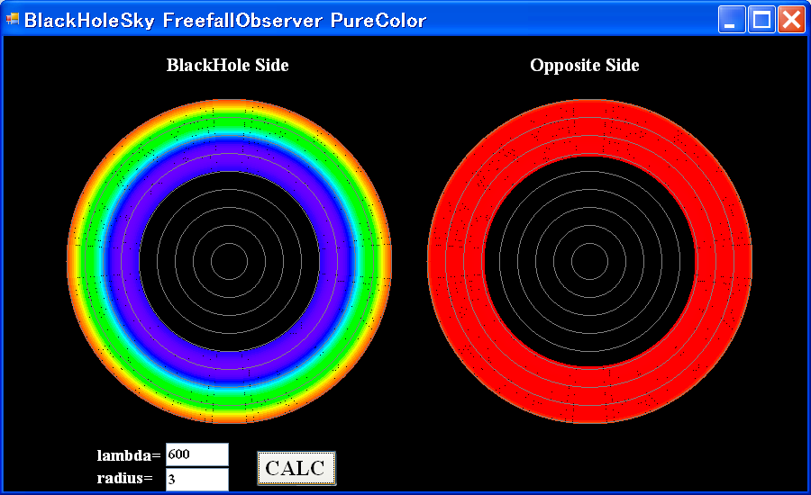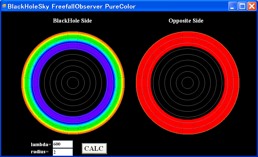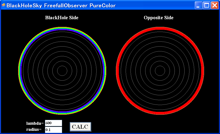 pure color lambda=600nm r/rg=100, 10, 5, 4, 3, 2